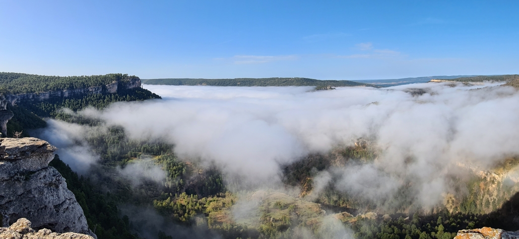 Amazing view early this morning from Abbey Hill, in the Burren, looking down towards Kinvara and Galway Bay stepped, in early Morning Mist.