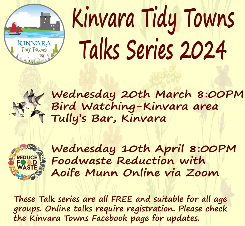 A reminder that we are hosting our Bird Watching-Kinvara Area Talk in Tullys Kinvara Kinvara Wednesday 20th March at 8:00PM