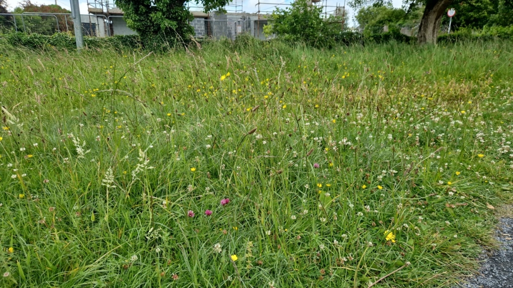 Our new sign will inform you of typical flora and fauna found here and how the garden is managed by tidy towns with light strimming a couple of times during the summer. There is also a lovely split limestone bench in the middle of the garden.