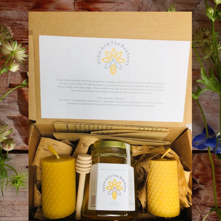 Vickie a local beekeeper to Kinvara and the surrounding areas, keeping Native Irish Honey Bees. Vickie produces honey from bees foraging on wild meadows, near coastlines, Apple Orchards and in the surrounding forestry. She has available hand rolled beeswax candles, which are chemical free and ideal for allergy sufferers.