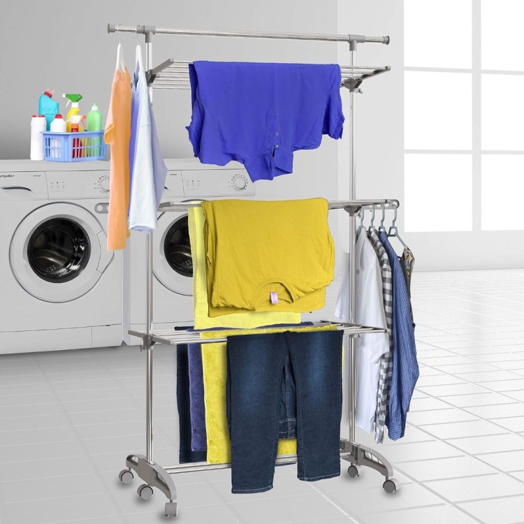 Consider using a drying rack whenever possible instead of throwing your clothes in the dryer.